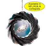 A Moving Tribute to Your Favorite Team. Geo spinners can be hung from a tree or a hook. These 10" works of art are mesmerizing to watch, helping you unwind and relax. Available for NFL, MLB and Collegiate teams. Specify team code. Please allow 2 weeks for shipping.
